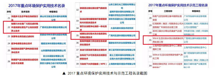 鴻生源兩技術(shù)一工程上榜中環(huán)協(xié)2017年重點環(huán)境保護實用技術(shù)與示范工程名錄