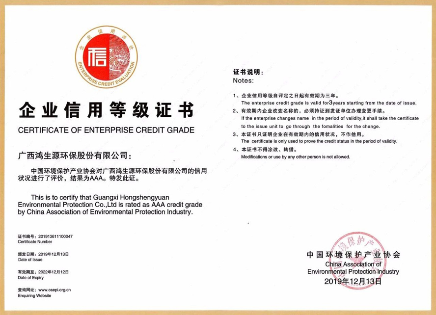 中國環(huán)保企業(yè)信用AAA等級是國家級企業(yè)信用最高等級的評價。2015—2018年,我公司連年通過中國環(huán)境環(huán)保產(chǎn)業(yè)協(xié)會組織專家對中國環(huán)保產(chǎn)業(yè)行業(yè)企業(yè)進(jìn)行的信用評價年度復(fù)審,保持AAA級。此次再度被評為中國環(huán)保企業(yè)信用AAA等級,有效期為三年,至2022年12月底止。這是中國環(huán)保產(chǎn)業(yè)對我公司嚴(yán)格守信、注重企業(yè)信用的充分肯定,也是對企業(yè)經(jīng)營綜合健康狀況的高度認(rèn)可,標(biāo)志著我公司“軟實力”的持續(xù)提升。
